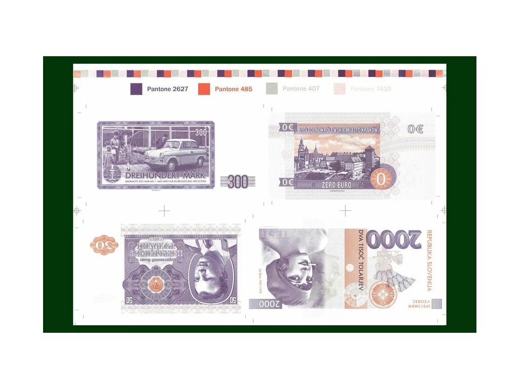 ARCH skúška tlače na obyčajnom papieri 0 Eur/300 Mark/2000 Tolar/50 Rubles 2016 MAKULATUR